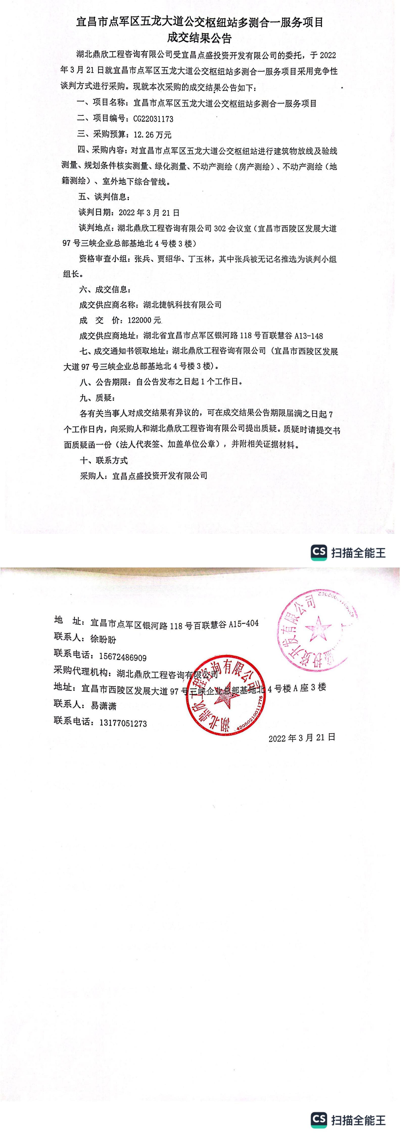宜昌市點軍區(qū)五龍大道公交樞紐站多測合一服務項目成交結果公告