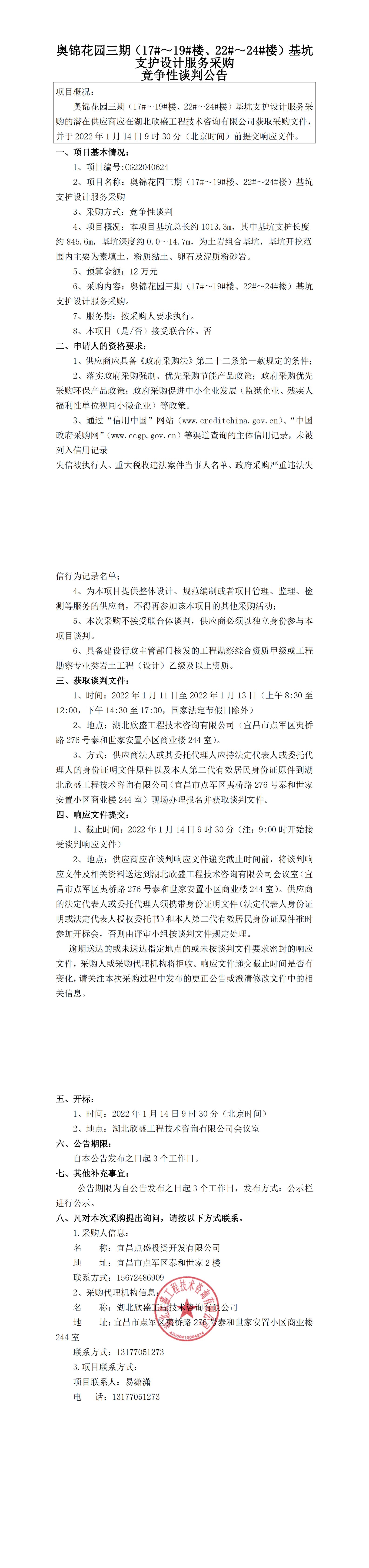 奧錦花園三期(17#~19#樓、22#~24#樓)基坑支護設(shè)計服務(wù)采購競爭性談判公告