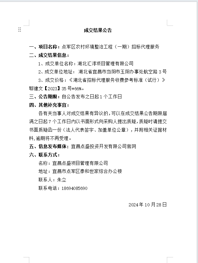 點(diǎn)軍區(qū)農(nóng)村環(huán)境整治工程(一期)招標(biāo)代理服務(wù)成交公告