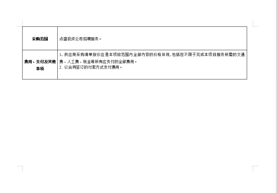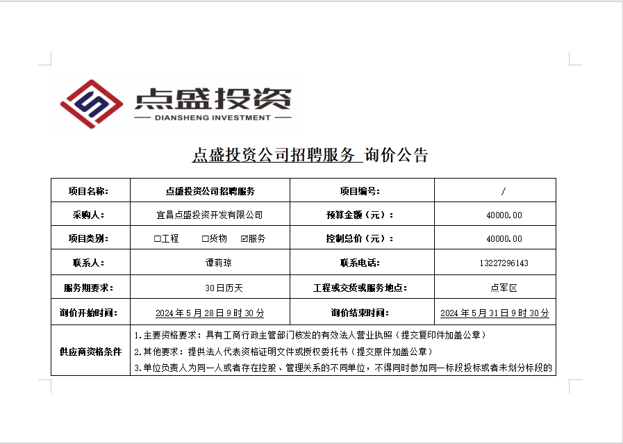 點盛投資公司招聘服務(wù)詢價公告