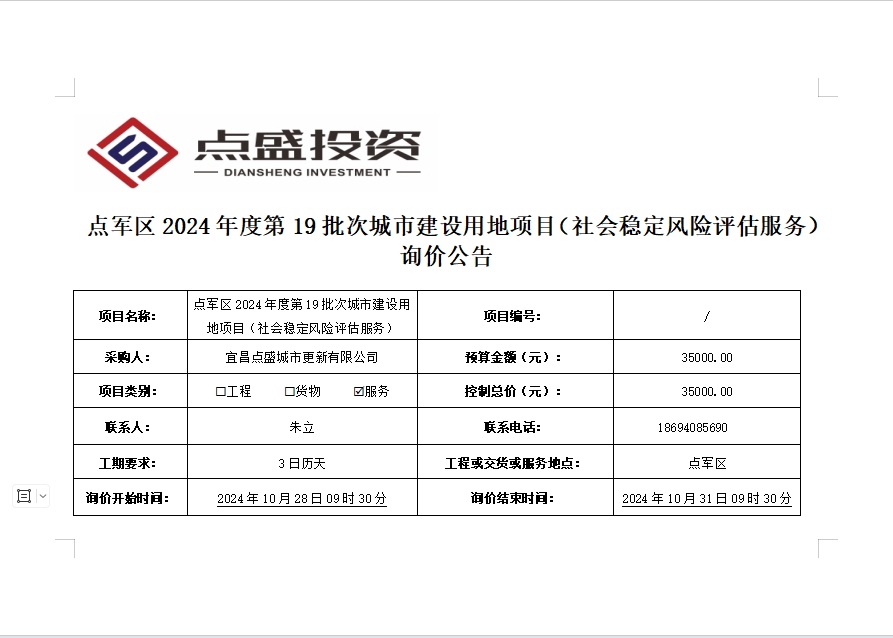 點(diǎn)軍區(qū)2024年度第19批次城市建設(shè)用地項目(社會穩(wěn)定風(fēng)險評估服務(wù))詢價公告