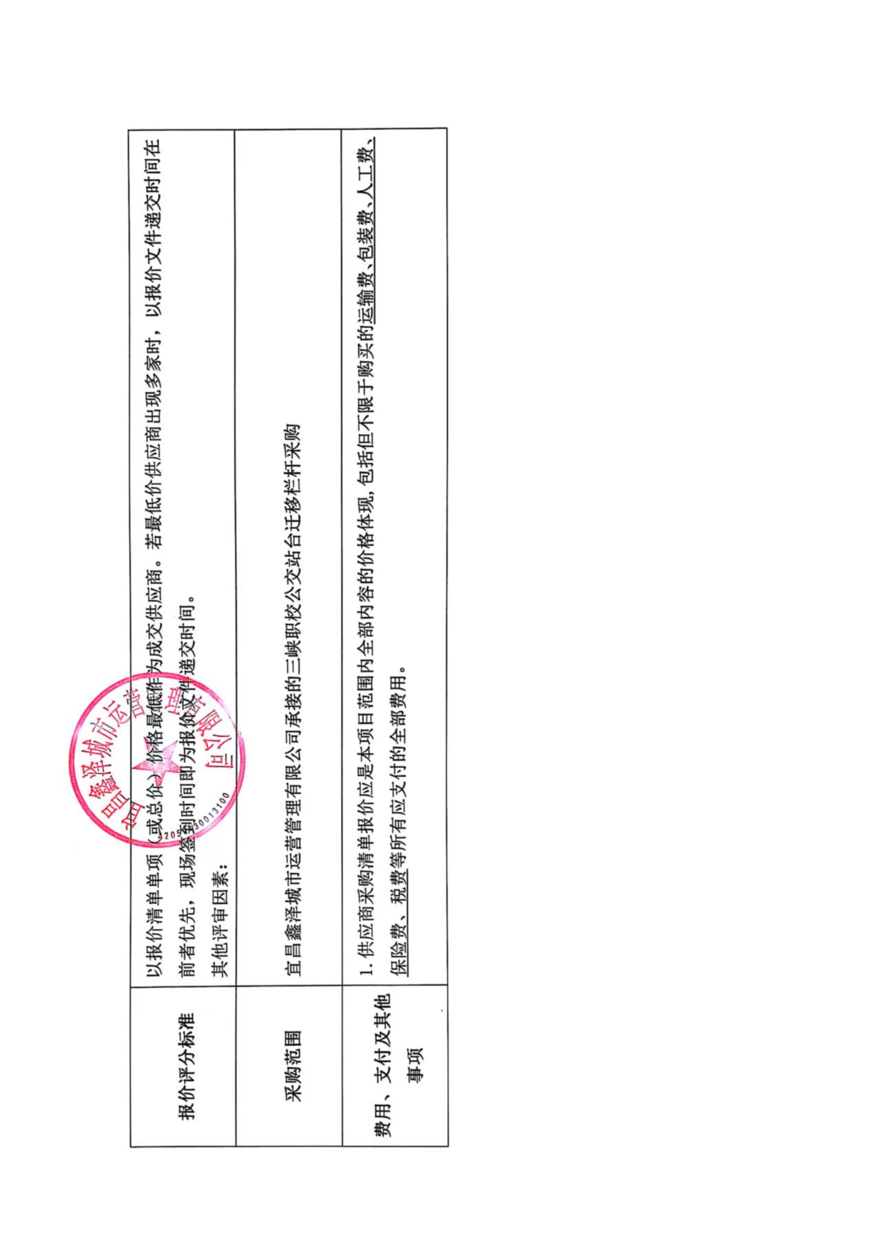 三峽職校公交站臺(tái)遷移欄桿采購(gòu)詢價(jià)公告